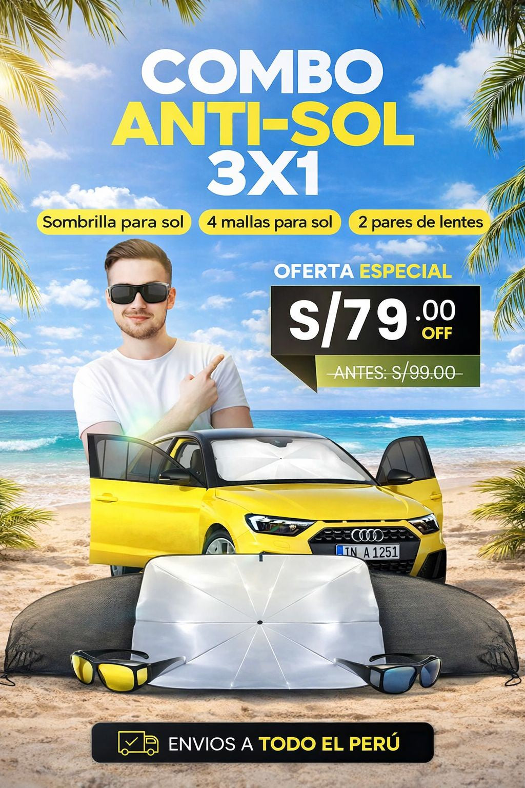 ¿Quieres manejar cómodo y seguro este verano? El COMBO ANTI-SOL 3X1 es la respuesta a tus necesidades.