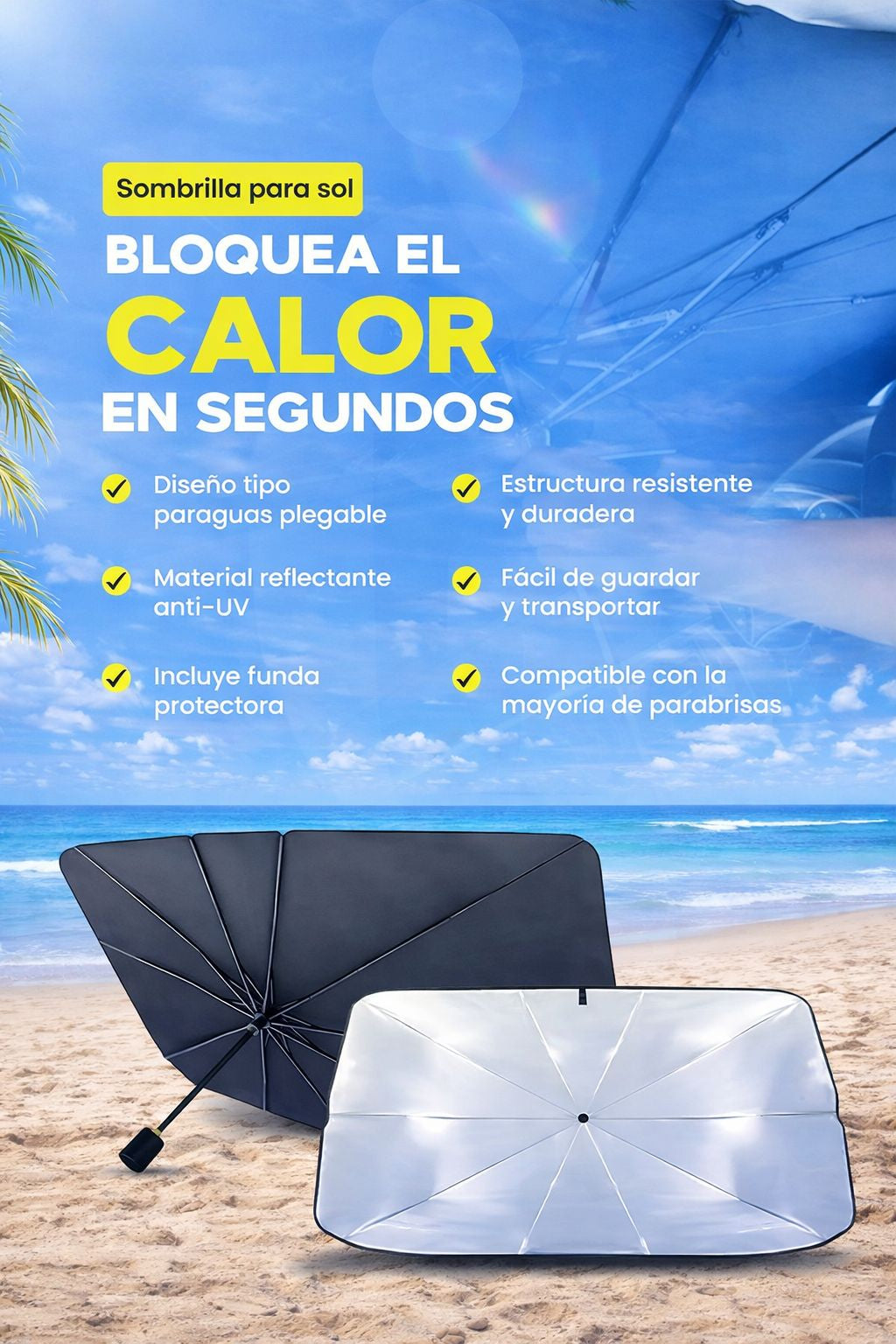 Evita el calor y el efecto dañino del sol. Protege tu piel, tus ojos y tu carro.