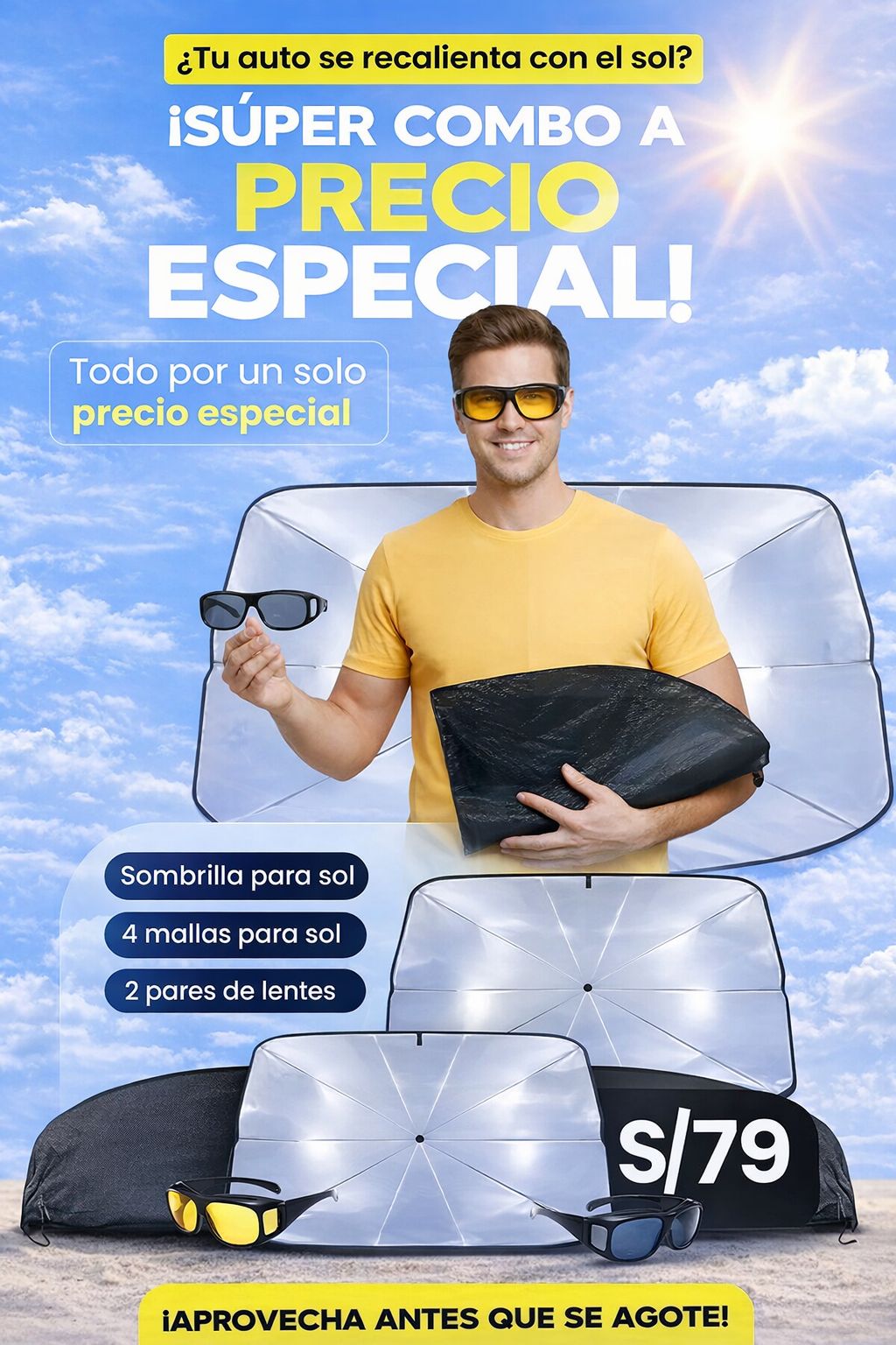 El COMBO ANTI-SOL 3X1 te brinda seguridad, confort y bienestar.