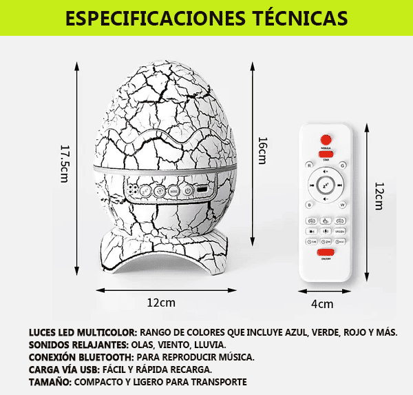 Dino Egg - Proyector Parlante Led huevo de Dinosaurio 🦖